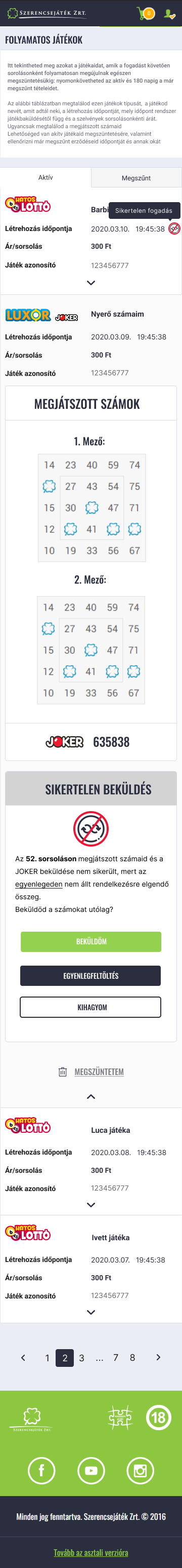 Elfogadás esetén az eredetileg megjátszott mezőkkel és számokkal, de már az új áron kerül automatikusan játékba küldésre a szelvényed.